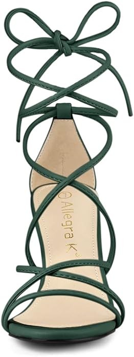 Allegra K Women's Strappy Straps Lace Up Chunky Heel Sandals