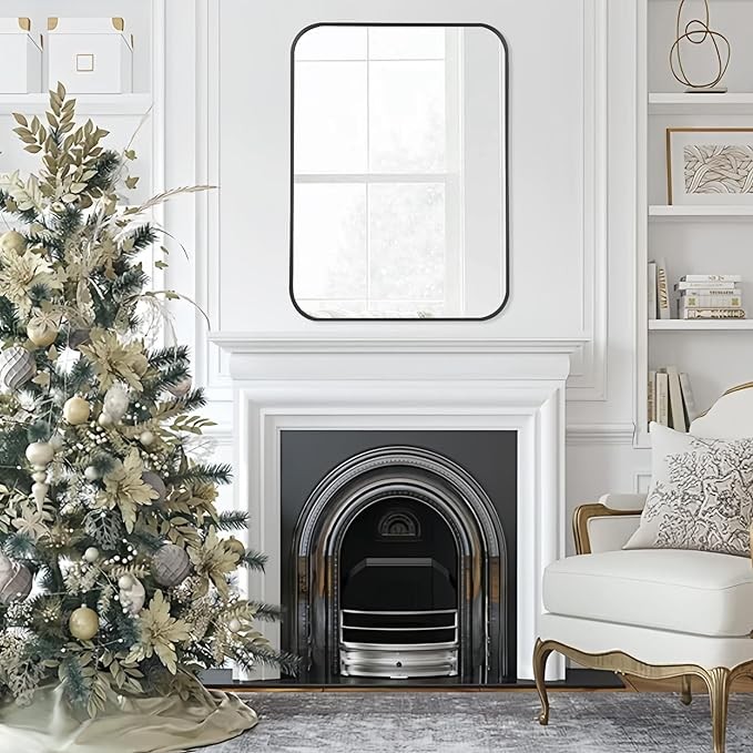 FARMER 20x28 Inch Rectangle Bathroom Mirror, Brushed Black Vanity Mirrors for Wall, Metal Frame Wall Mirror, Vanity Mirror with Round Corner for Bedrooms, Entryways, Living Rooms, Horizontal/Vertical
