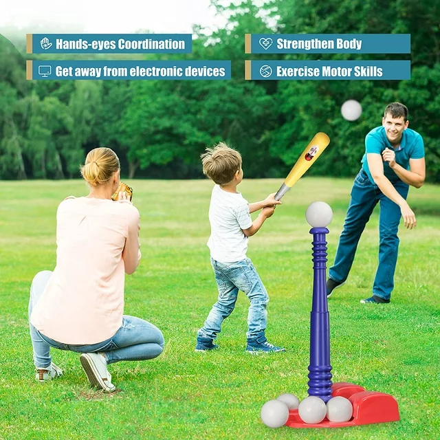 Sports & Outdoor Play Toys - This set of baseball toys can be used as an introduction to baseball for children. Through swing and batting practice, children have mastered baseball skills, and their hand eye coordination has also been strengthened.
