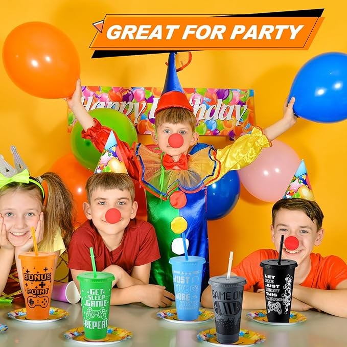 Widely Applicable: these 24 oz plastic cups with lids are colorful and funny, can be applied for birthday parties, video game themed parties and more, which will create a strong happy atmosphere and leave your guests unforgettable memories