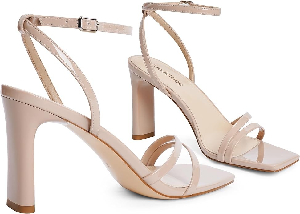 Modatope Womens Sandals Square Open Toe Chunky High Heels Strappy Ankle Strap Sandals Comfort Dress Party Shoes