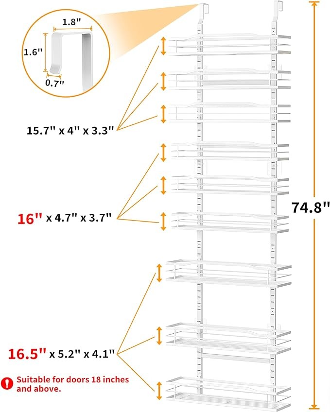 Maximize Your Space: Our 9-Tier over the door pantry organizer is designed to make the most of your storage space, allowing you to store more items in a smaller area such as spice and some jars. Perfect for small kitchens or those with limited storage space.